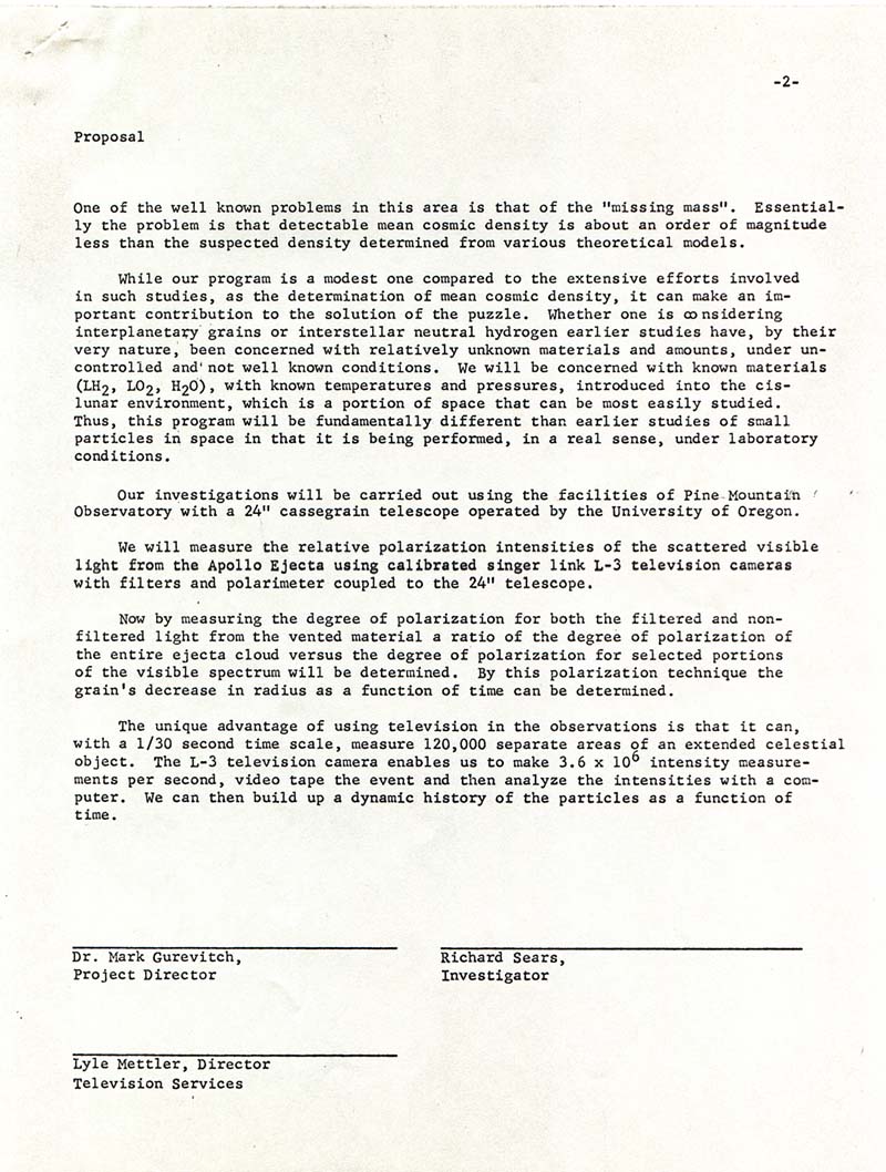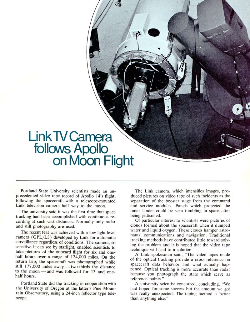 From 1969 to 1972 direct observations of Apollo spacecraft were conducted from Pine Mountain Observatory in the high desert of Central Oregon. This site collects artifacts from this pioneering work.